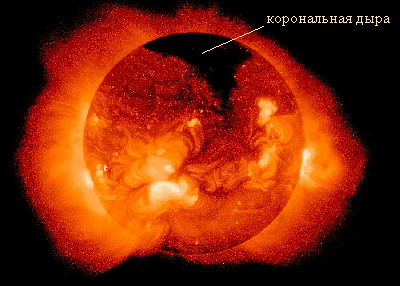 Мы знаем, что солнечная корона содержит «дыры» - области низких температур и плотностей и слабых магнитных полей. Эти дыры вероятно позволяют высокоскоростному солнечному ветру струится подобно воде через шланг. Корональные дыры на ренгеновских фотографиях выглядят как темные области.