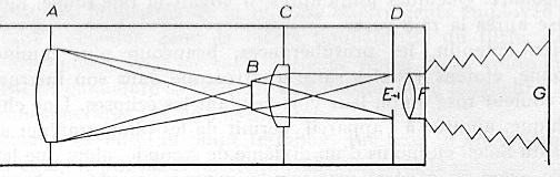 Диск B, диафрагмы A, C, D и экран E необходимы для блокирования света от диска солнца и и уменьшения эффектов дифракции