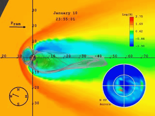 Огромная магнитная замкнутая область, содержащая солнечный ветер и вмороженные магнитные поля. На границе гелиосферы наш солнечный ветер встречает межзвездная среда – плазма, что пронизывает нашу галактику Млечный путь. Ученые установили, что граница гелиосферы располагается на расстоянии между 9 и 15 миллиардов километров от Солнца, далеко от орбит всех планет солнечной системы. Только в следующем столетии или далее космические аппараты Вояджер 1 и 2, а также Пионер 10 и 11 покинут гелиосферу и войдут в межзвездное пространство.